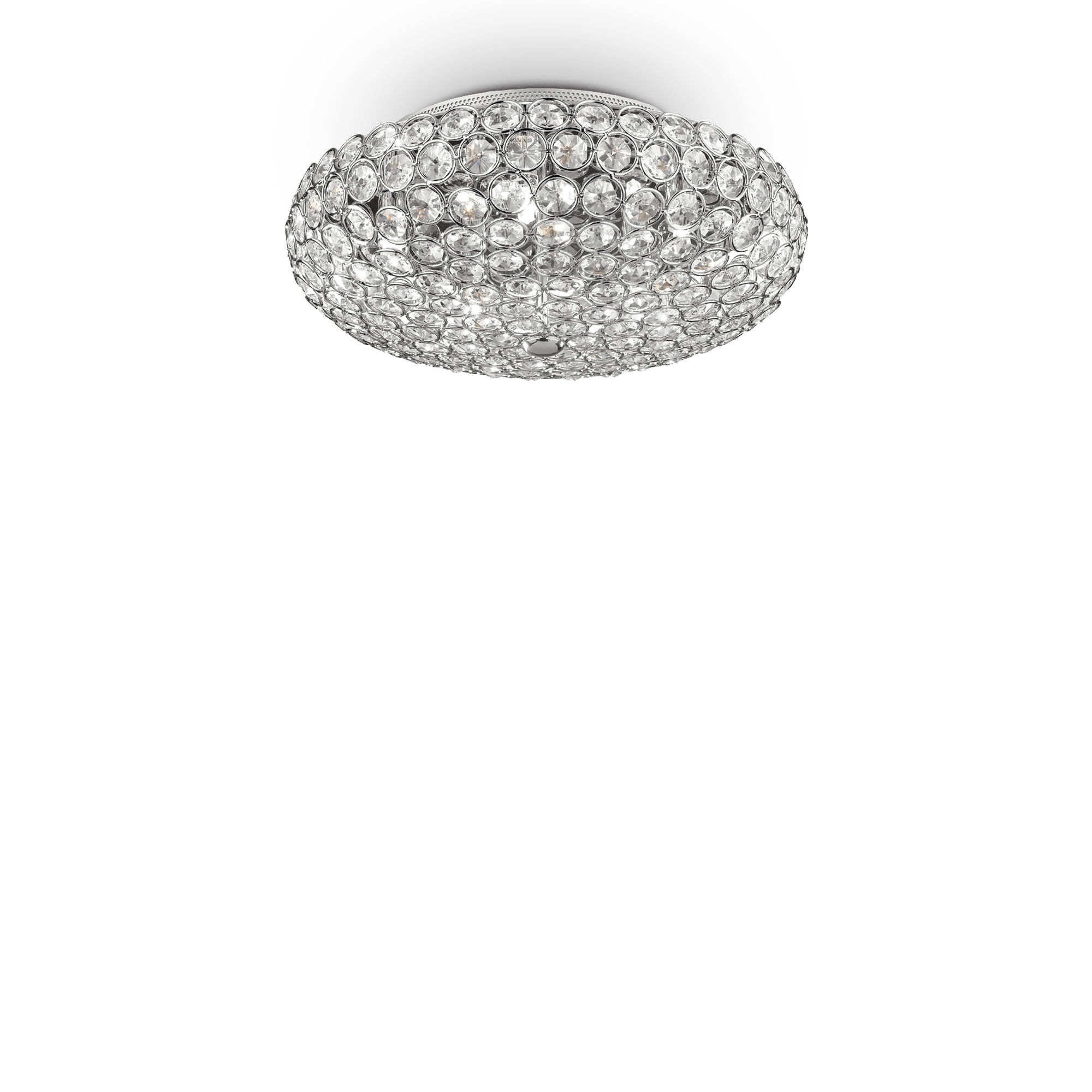 PLAFON  DORADO O CROMADO, CON CRISTALES EN TRASPARENETES O AMBAR, SEGUN ARMAZON.