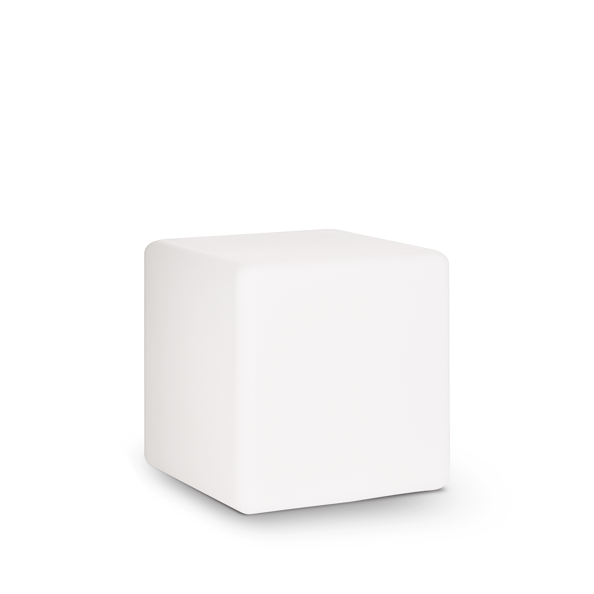 CUBO PARA EXTERIOR EN POLICARBONATO BLANCO, CON BASE O PINCHO. DOTADO CON ENCHUFE.