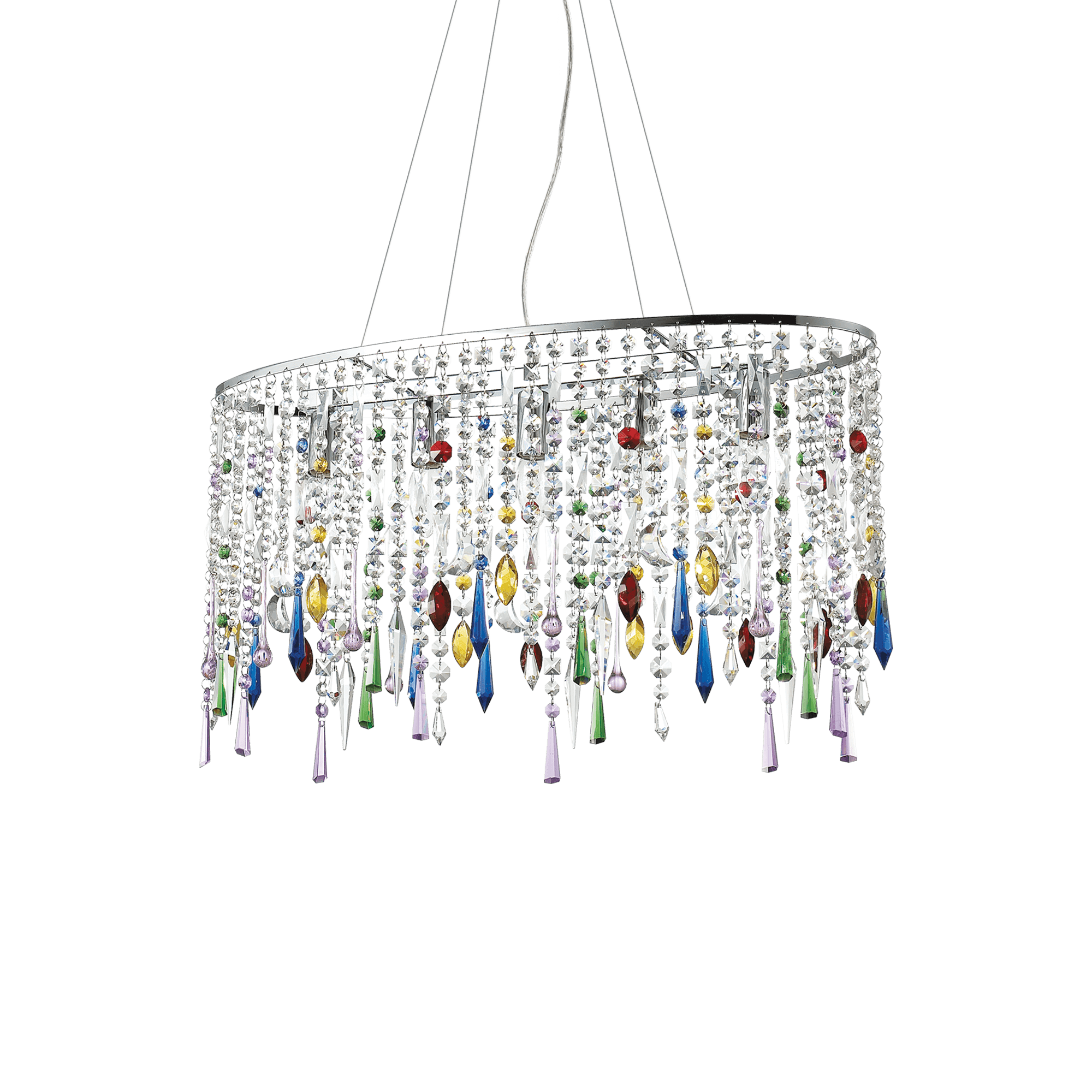 COLGANTE METAL OVALADO, CON CRISTALES STRASS COMBINADO CON CRISTALES DE COLORES.