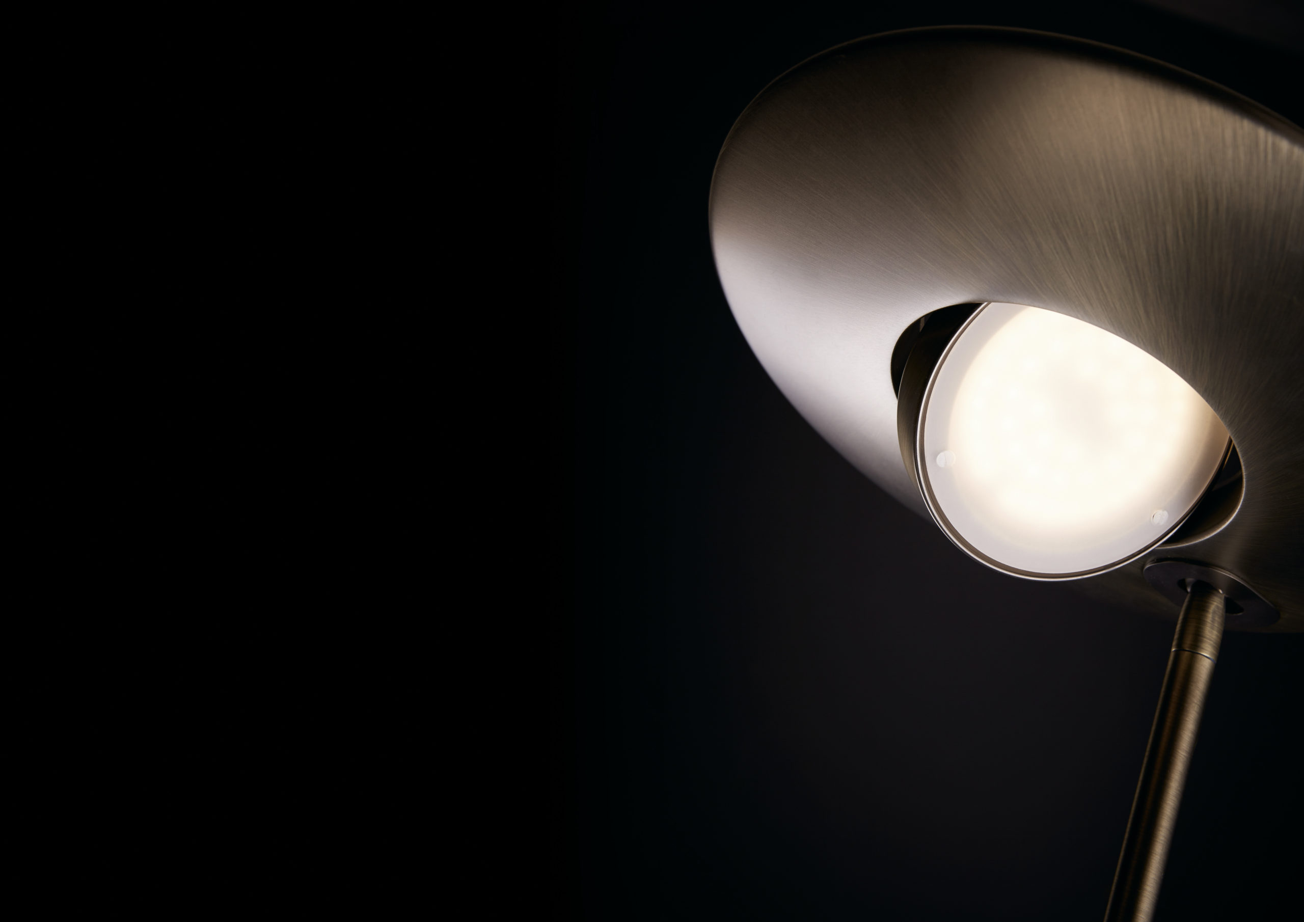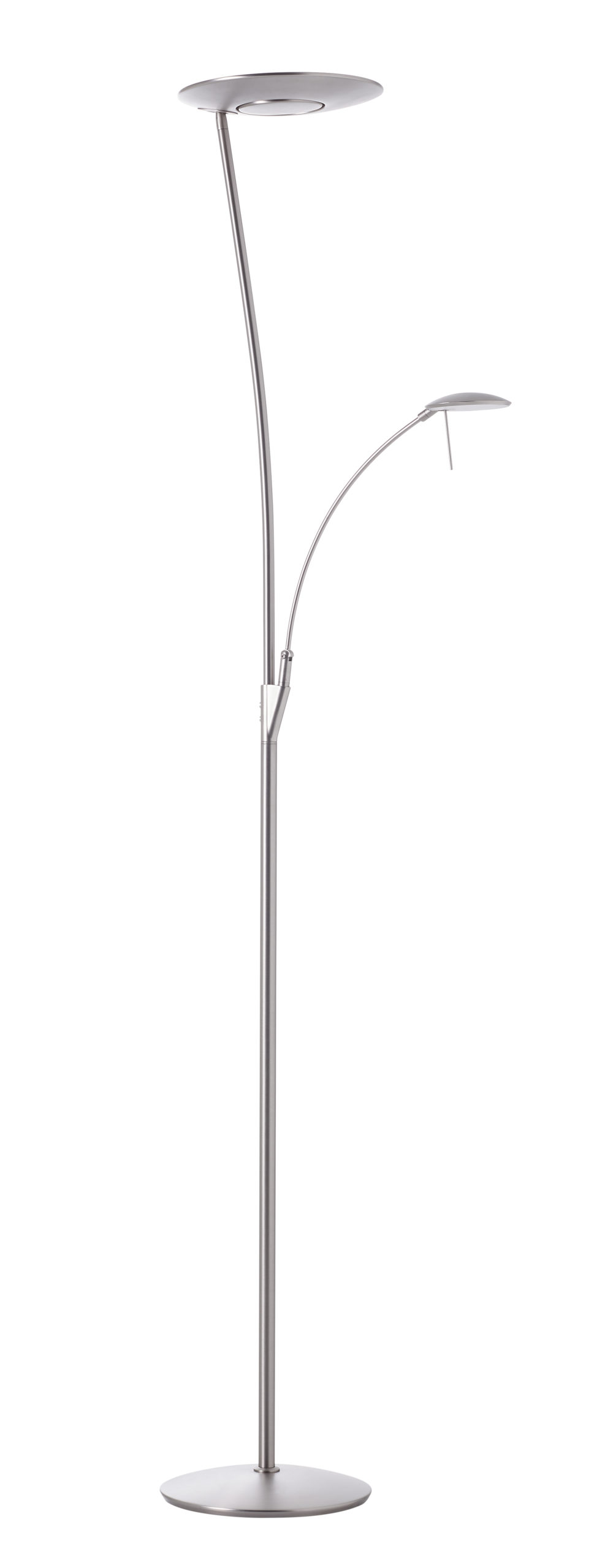 PIE CON LUZ DIRECTA E INDIRECTA EN PLATO LUMINICO, CON GRAN POTENCIA LUMINICA, 30W DE LUZ INDIRECTA (4.000LMS), Y 10W DE LUZ DIRECTA. ADEMAS LLEVA LECTOR CON 7W (700LMS), TODO EN 3000K.          PLATO GIRATORIO EN ZONA CENTRAL.